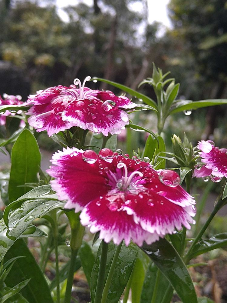 お連れしたナデシコ、雨粒を纏って真ん中の蕊がくるんとまるまってて、可愛いね🤗