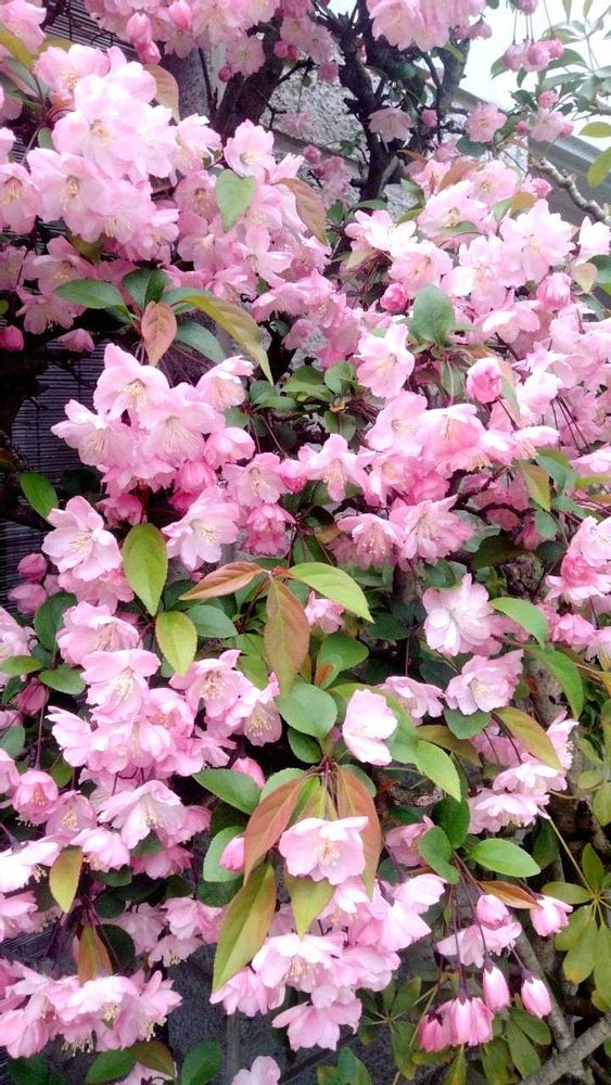 横浜のハナカイドウは今が満開で上から下までびっちり咲いてくれました。(笑)