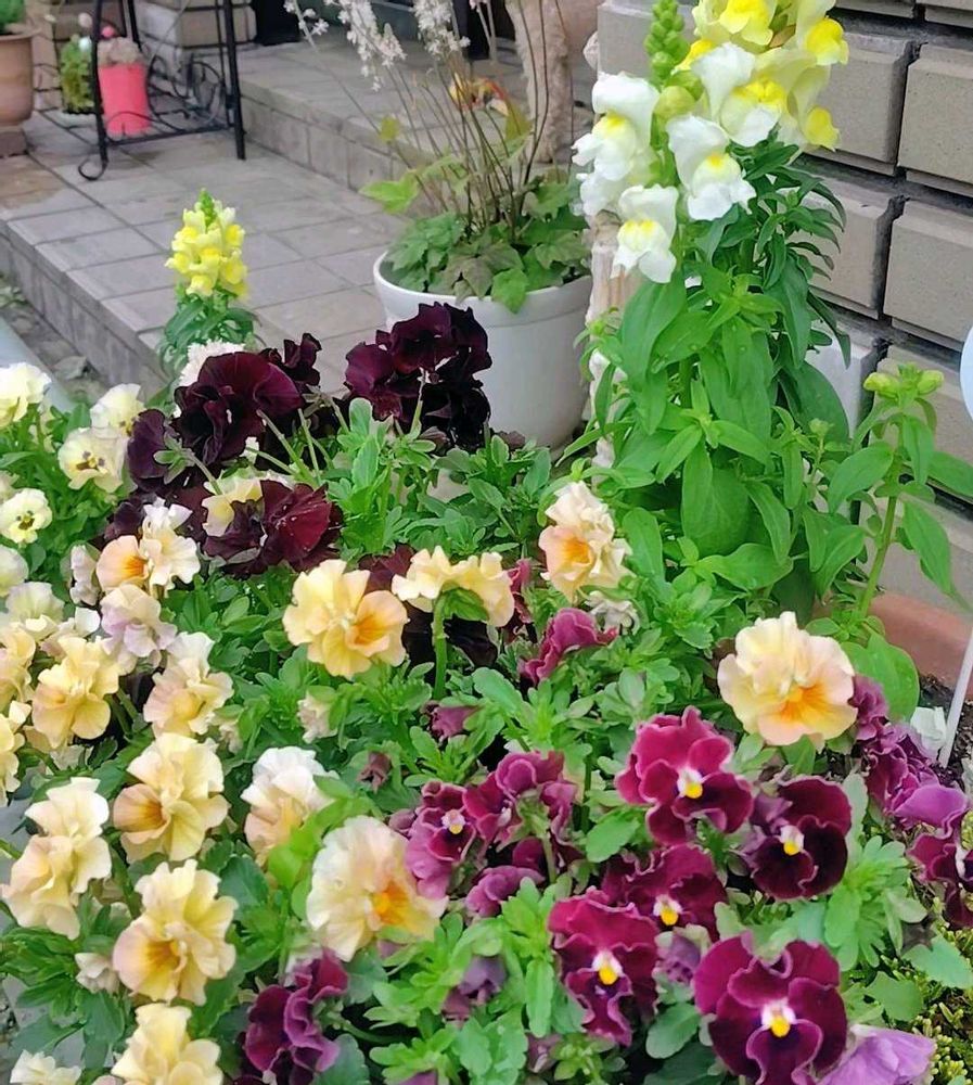 ③年末からのビオラたちと🍋イエローのキンギョソウが可愛らしくなってきた😚。
