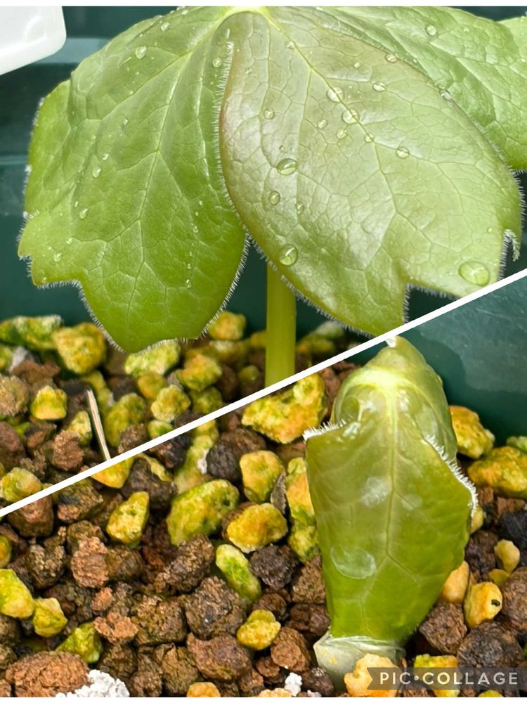 ④今日見たらアメリカハッカクレンの傘のような葉が急に開いていました☂️