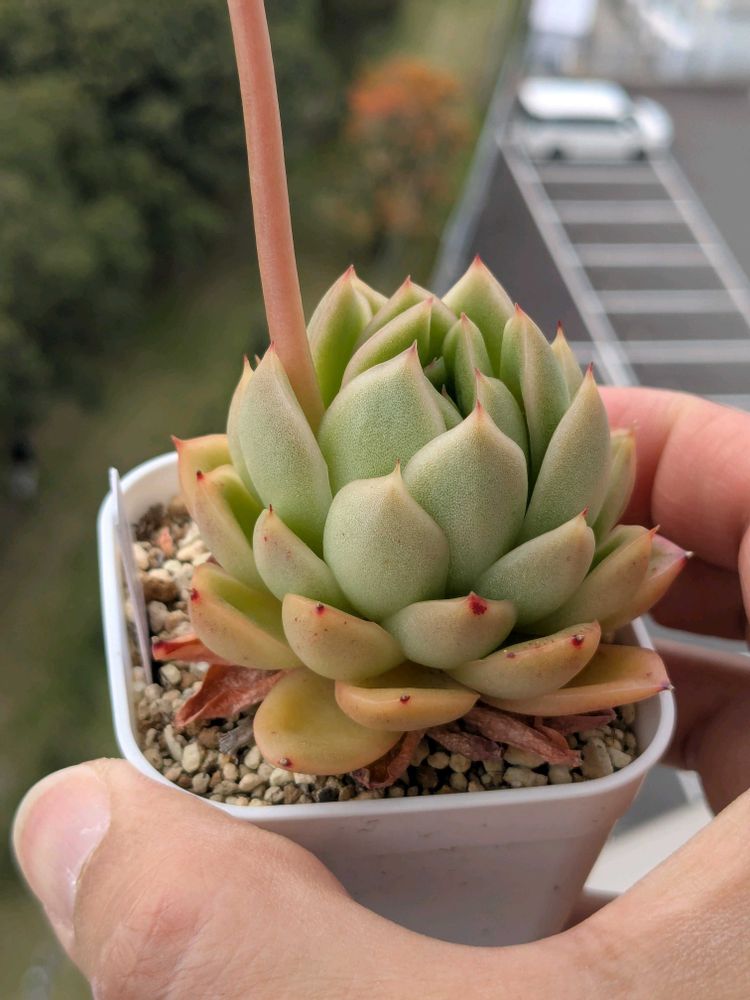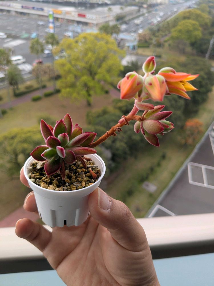 朝からシトシト春雨の降る薩摩の朝です。ベランダのエケベリアたちが咲き始めました🌸
