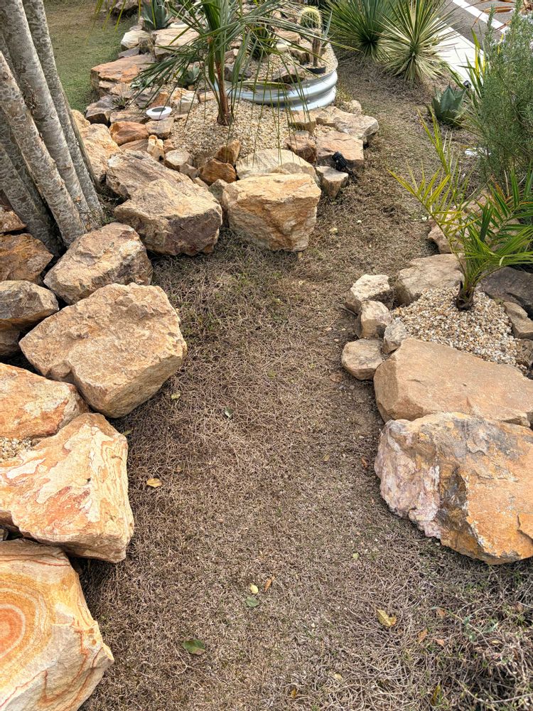 ということで仮置きしたロックガーデン状態、ここから山砂入れて石組みしてアガベやら植えて行きます、やる事多すぎて仕事する暇ないわ😏