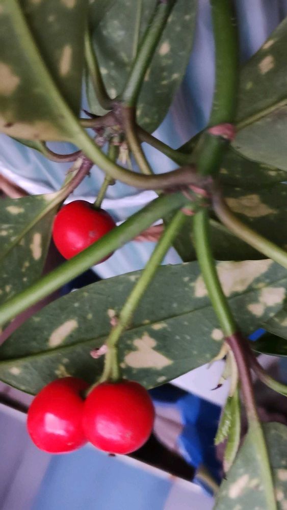 アオキの実がまん丸で可愛いですね😍