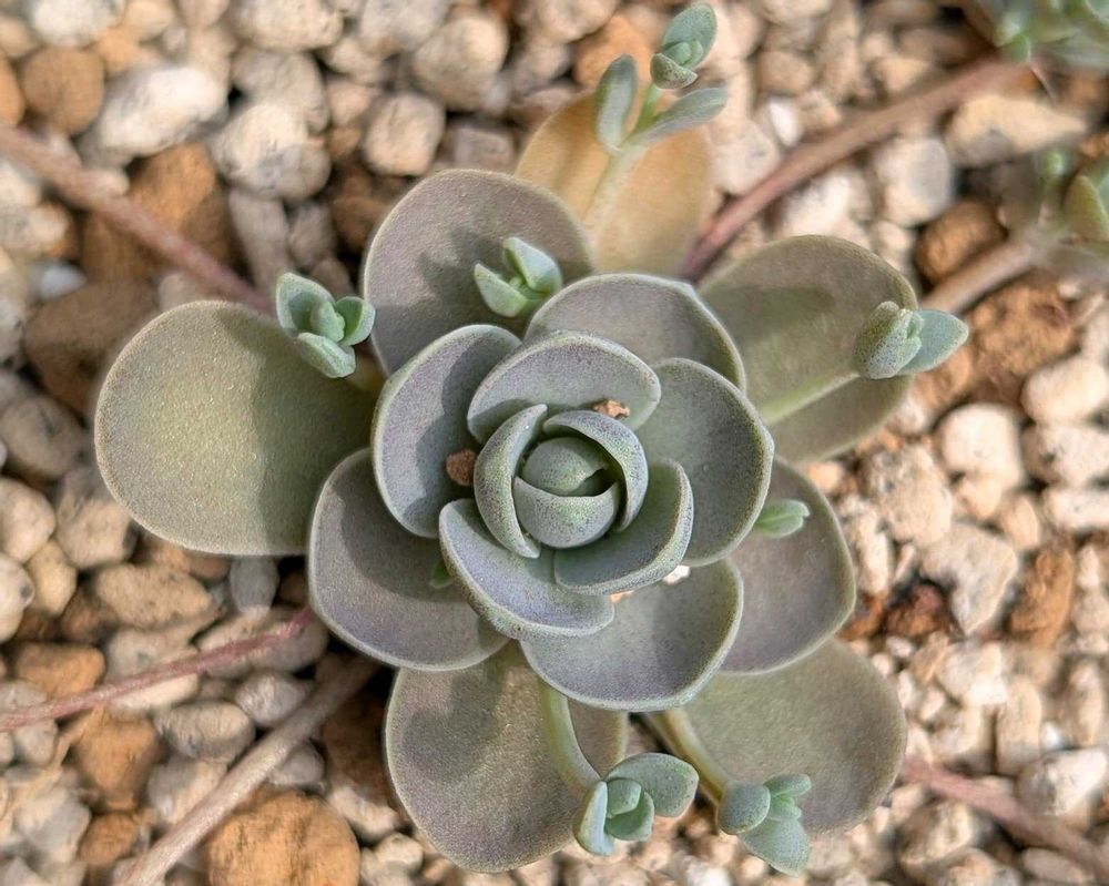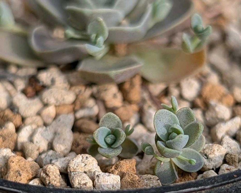 2025年4月にネットでたにたのさんの苗を購入した時におまけでついてきた名無しのエケベリアが面白く育っているので、成長記録を作りました。 この子の名前ご存知でしたら、ぜひ教えてください🙏
