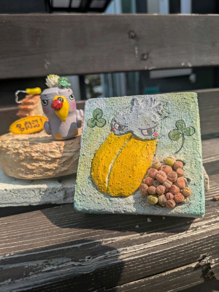 ハシビロコウのモルタル鉢に可愛いリトープス😍