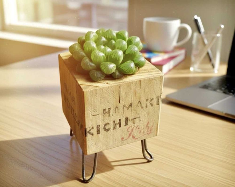端材を使って作った多肉植物の鉢はHAMAKICHI氏の作品。