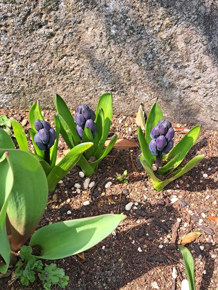 ヒヤシンスかなぁ?カワユイ💕一瞬雪割草かなぁと思ったけど葉っぱが違うみたいなのでヤブイチゲかなぁ?スイセンも早いところは咲き始めました😊クリスマスローズもチラホラ。白木蓮?まだ白木蓮とコブシの違いが良くわからないけどかなり蕾が膨らんできたように見えます😄