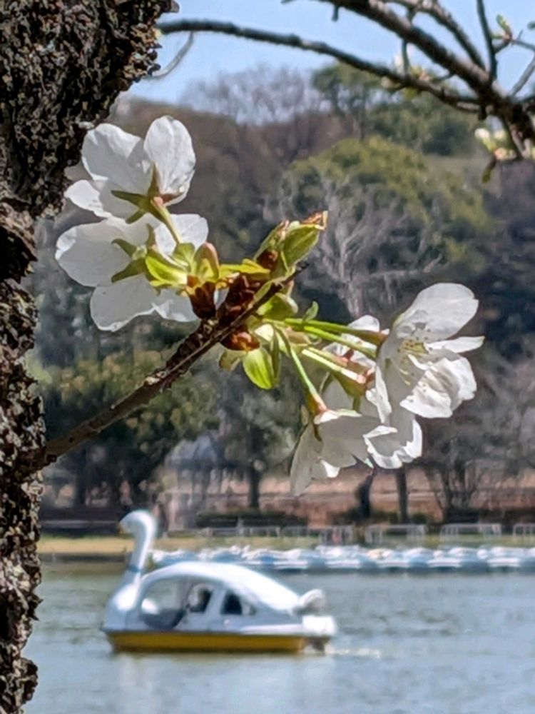 桜🌸とボートの🦢の後に本物の白鳥羽を広げて綺麗ですね😍