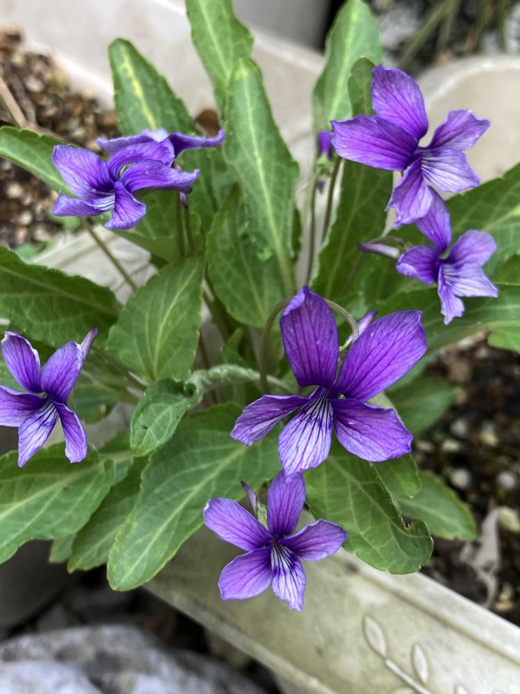 ブランターの柔らかな土でノビノビ暮らすスミレ💜名前はよくわからないので…何かのスミレ🏷️にしてもイイんだけどね〜🤣🤣