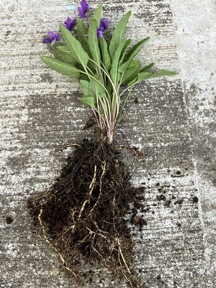 💜プランターの隅に飛んできたスミレ💜植え替えるつもりで抜いたら 根が底まで😳💦