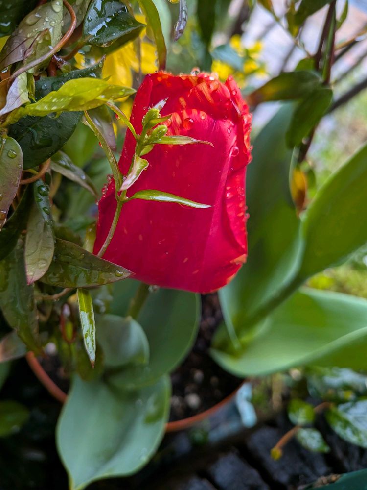 真っ赤なチューリップ🌷雨☔に濡れても可愛い💕