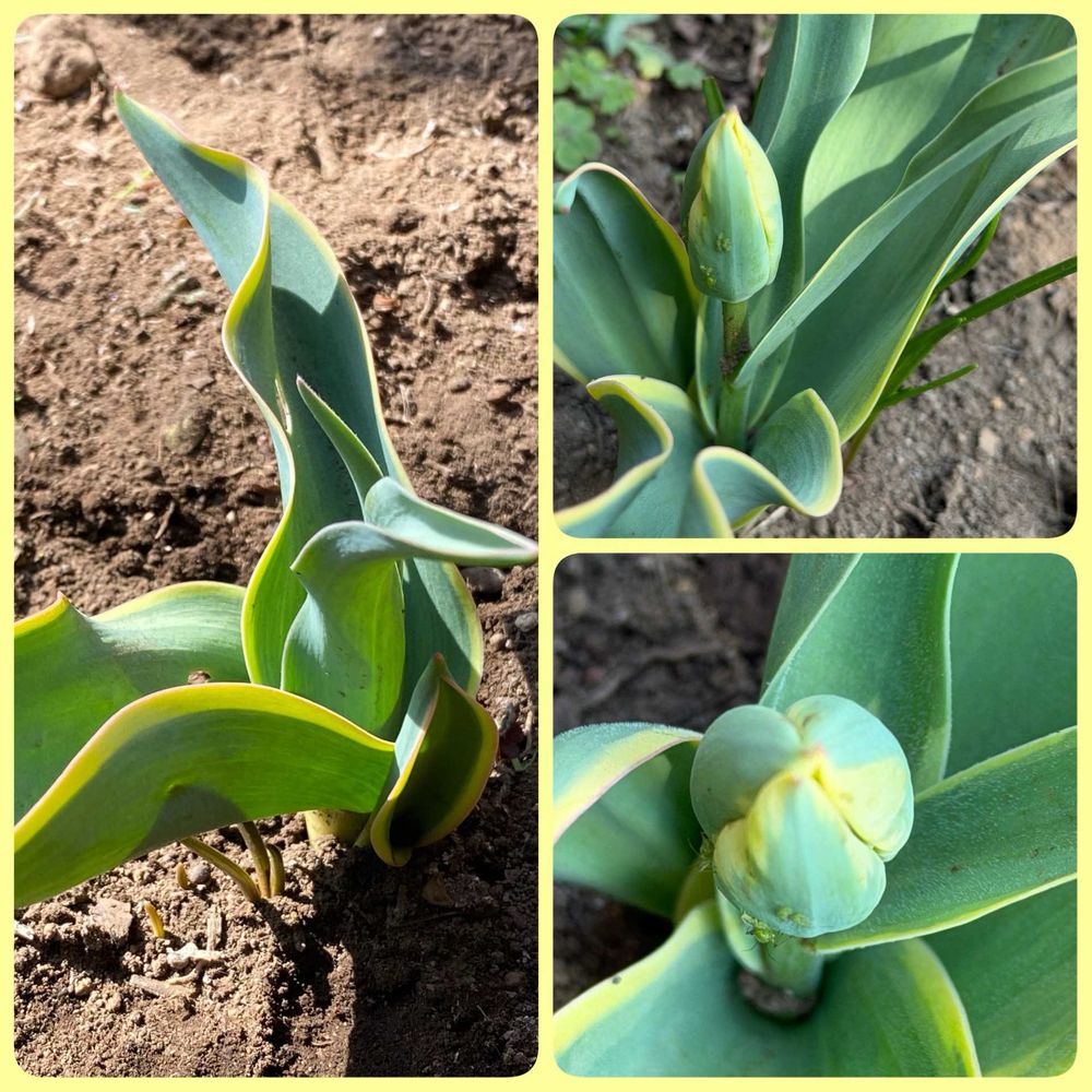 2枚目➡️斑入り葉チューリップ🌷ウチで育てた球根を実家の庭に地植えしたまま放置してたけれど自然に育ってくれました🥰♪