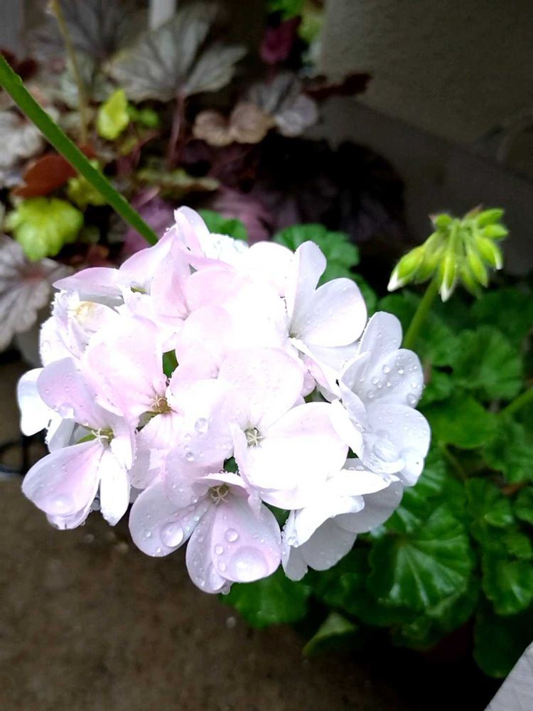 こんばんは⭐ゼラニウムは気が付くと咲いている花です😄🌱💞雨が降った後なのでさらに紫陽花っぽく見えました😊🤍大雨は帰宅時には止んでいました😉明日は夕方からまた雨が降るみたいです☔