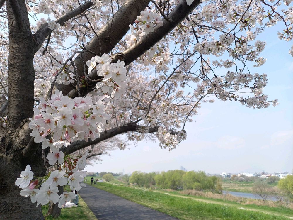 いつもの土手のお花見散歩