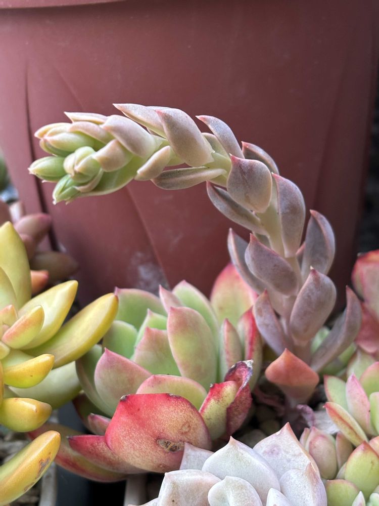 2025年4月にネットでたにたのさんの苗を購入した時におまけでついてきた名無しのエケベリアが面白く育っているので、成長記録を作りました。 この子の名前ご存知でしたら、ぜひ教えてください🙏