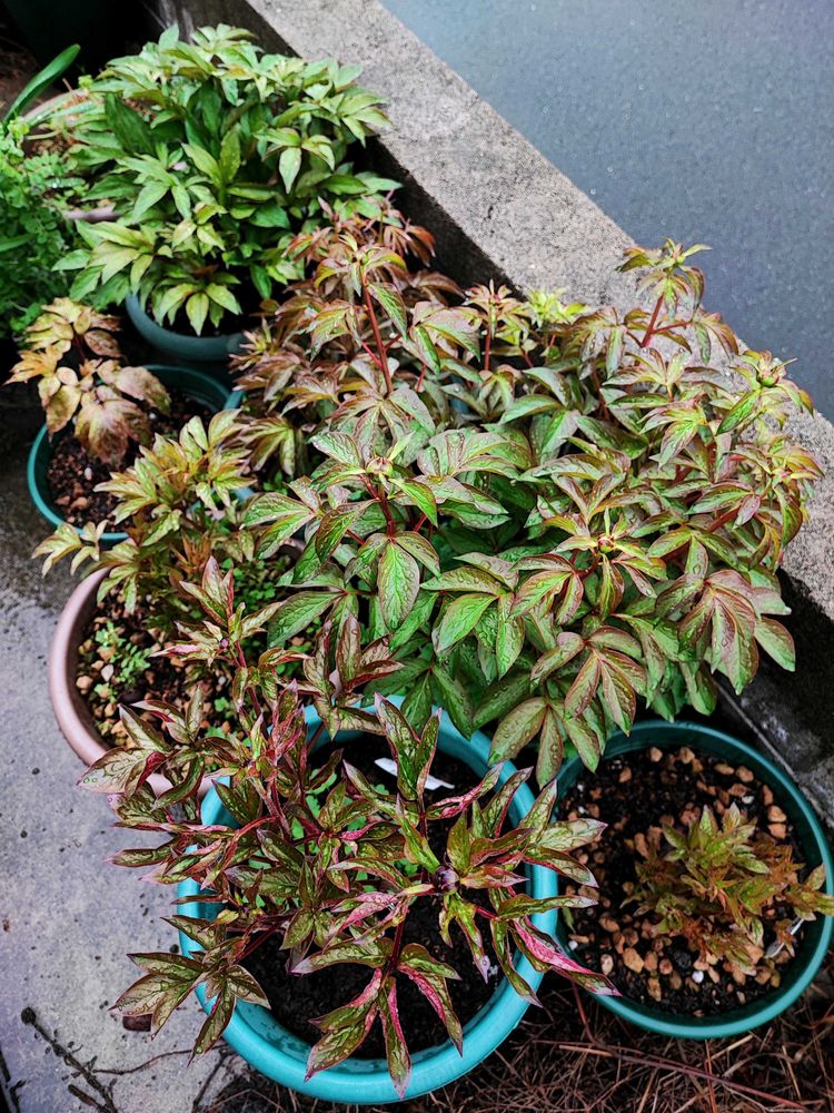 うちの芍薬ちゃん達が元気いっぱいです。地植えの子が3株いるけど、鉢植えの子達の方がマメに世話されてる&早咲きなので元気です。これは芽が出るか微妙だなーってなってたゴールドの子も、何とか芽が出ました。品種的に弱い子はなかなか大きくするのが難しいですが、根っこがあって芽が1つでもあれば何とか復活してくれることも多いので、芍薬は宿根草としてはかなり強い方だなって思ってます。