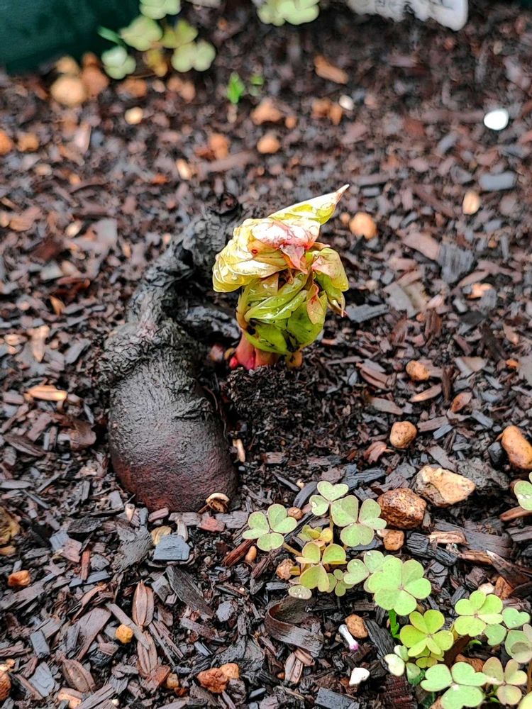 個人的には花が咲かなくても、葉っぱもめちゃくちゃ美しいし、芽が出た時の奇妙さとかもワクワクして面白いし、花が咲かなくても、大型の宿根草としても十分楽しめると思ってます。大型の宿根草として考えると、ホスタ(ギボウシ)とかよりもお値段控えめで毎年春にゲットできる点もいいと思ってます。