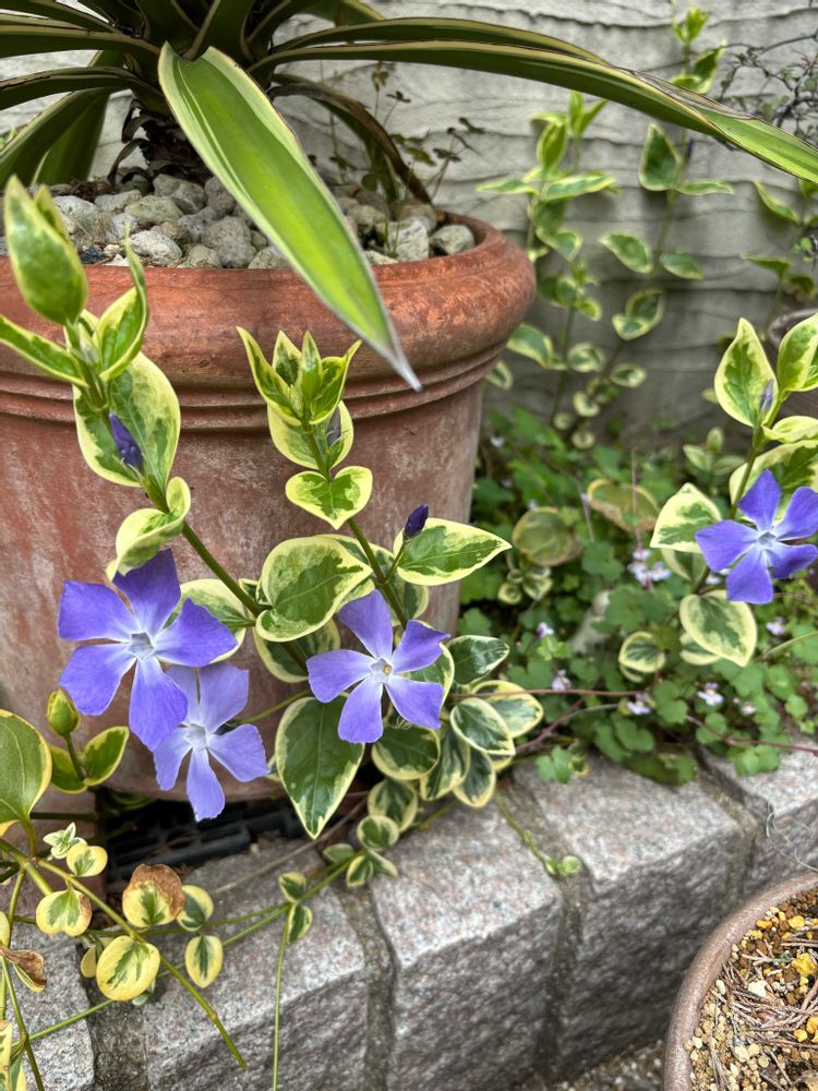 ツルニチニチソウは特に水やりも肥料もあげてません。おこぼれで咲いたのかな🤣