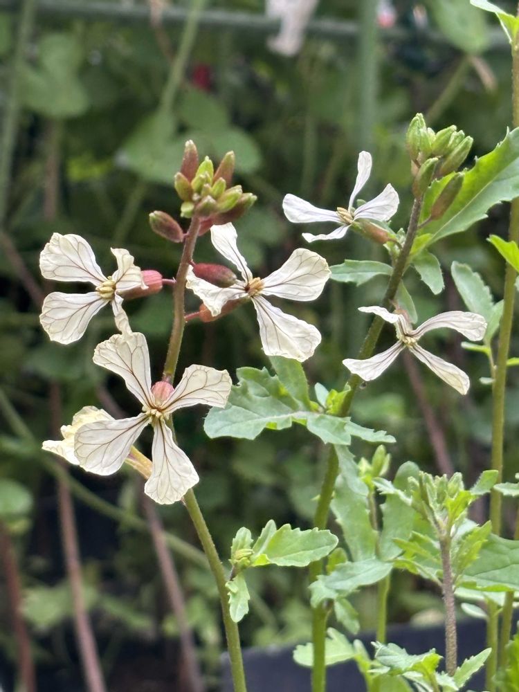 ②フォロワーさんからルッコラの花は食べられると教えて頂いたのでサラダの彩りと天ぷらにしてみます😋