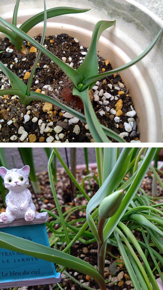 ②1月末に見切り品の原種チューリップの球根2種を買いました