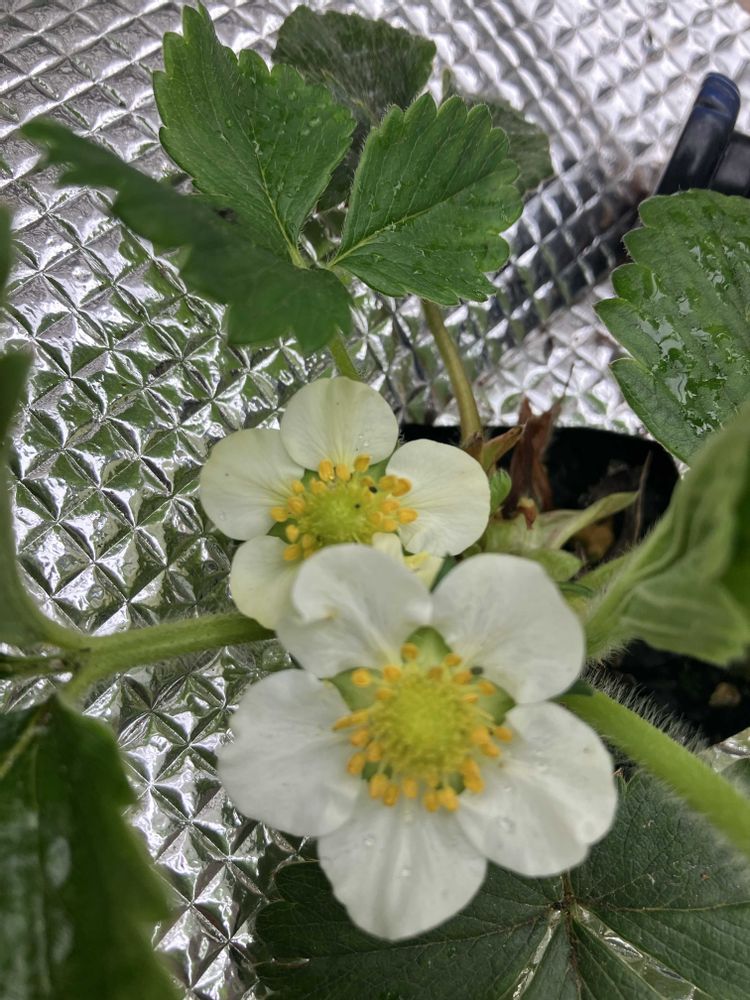 可愛い2個咲いてるけど雨です。雨だと花粉流れちゃうから苺できないね😨