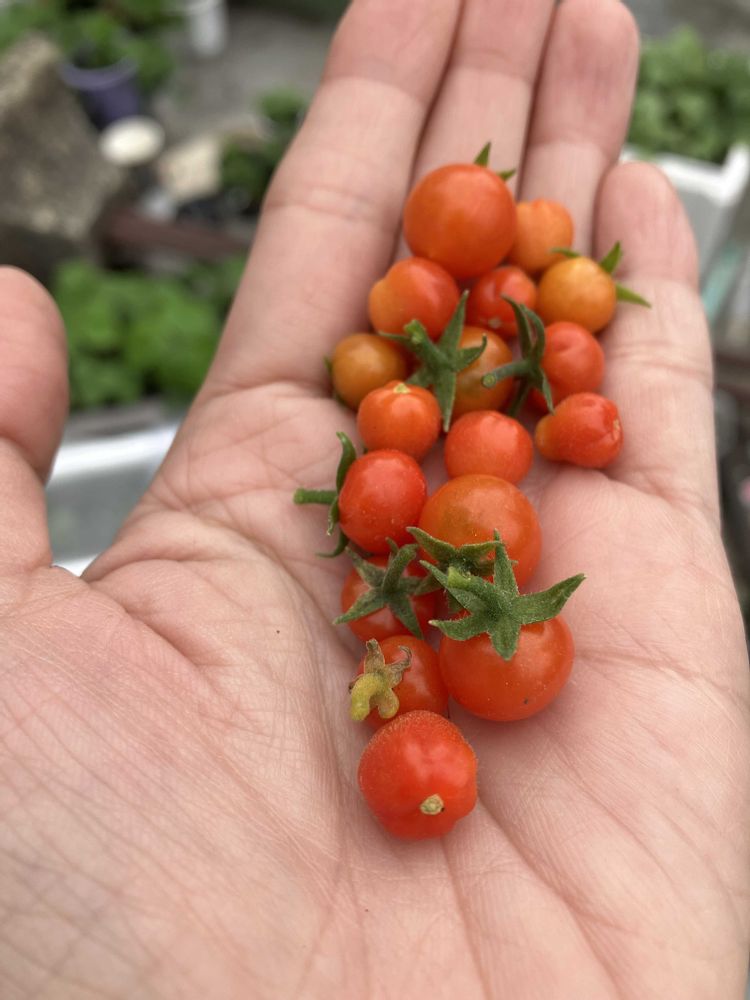今日のトマトは17個!!一瞬で食べちゃいました。ラディッシュも順調そうです。