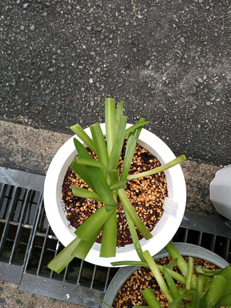 ヒスイカズラを育ててみたくなり、購入する前に先ずはネットで育て方を検索しました。 検索した結果、沖縄などの温かい地方での地植えや、植物園の開花の投稿は沢山有りましたが、鉢植えでの詳しい育て方は余り投稿されていませんでした😅 育てる事が出来るか分かりませんが、これもチャレンジと思い、取り敢えずメルカリで購入して見ました。 お迎えしたのは2025年6月の初めです。 植替えに適した時期にしました。 調べた結果、気難しいと出てたので、最初から少し大きめな子をお迎えしました。