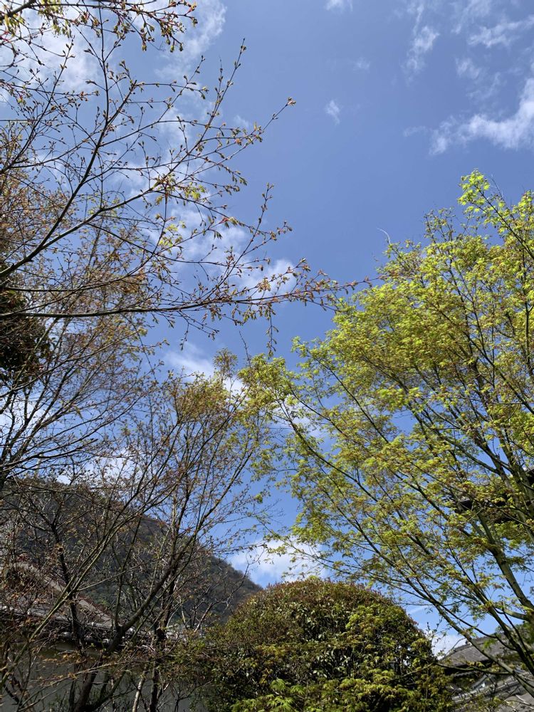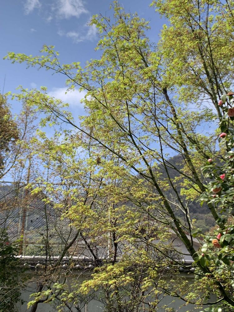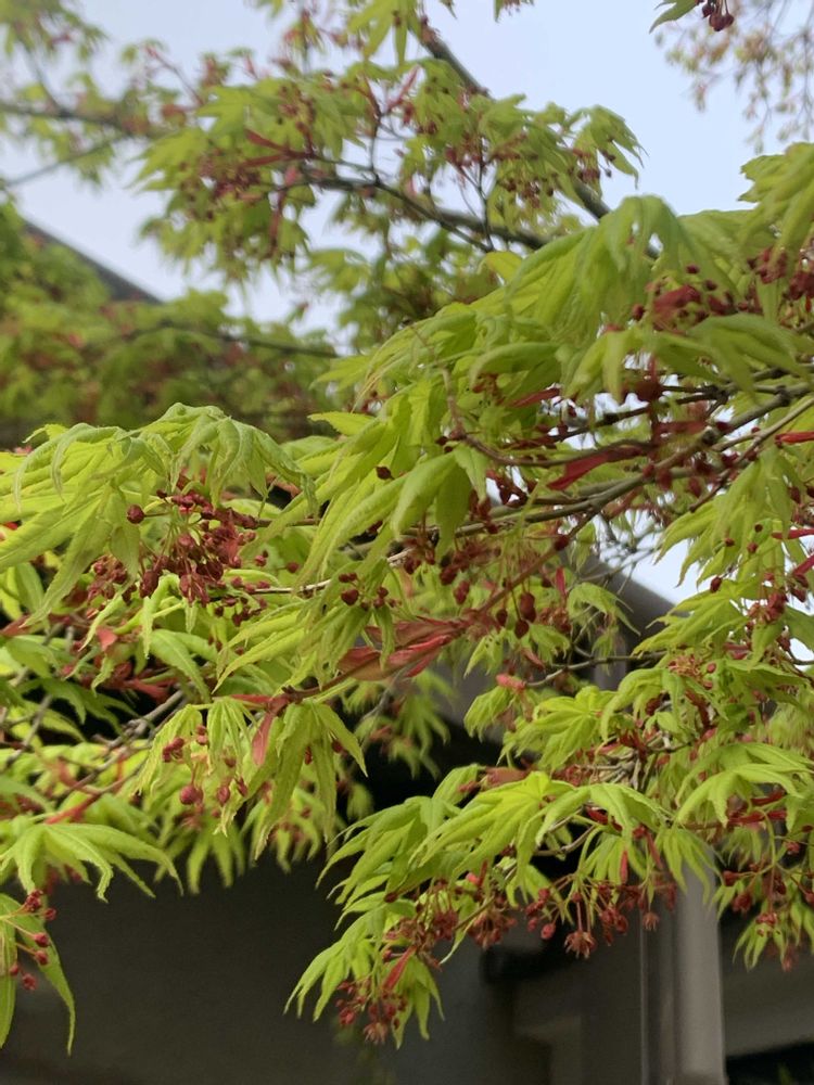 ①②モミジの新芽がとても綺麗です。モミジの花ももうすぐ咲きそうです。