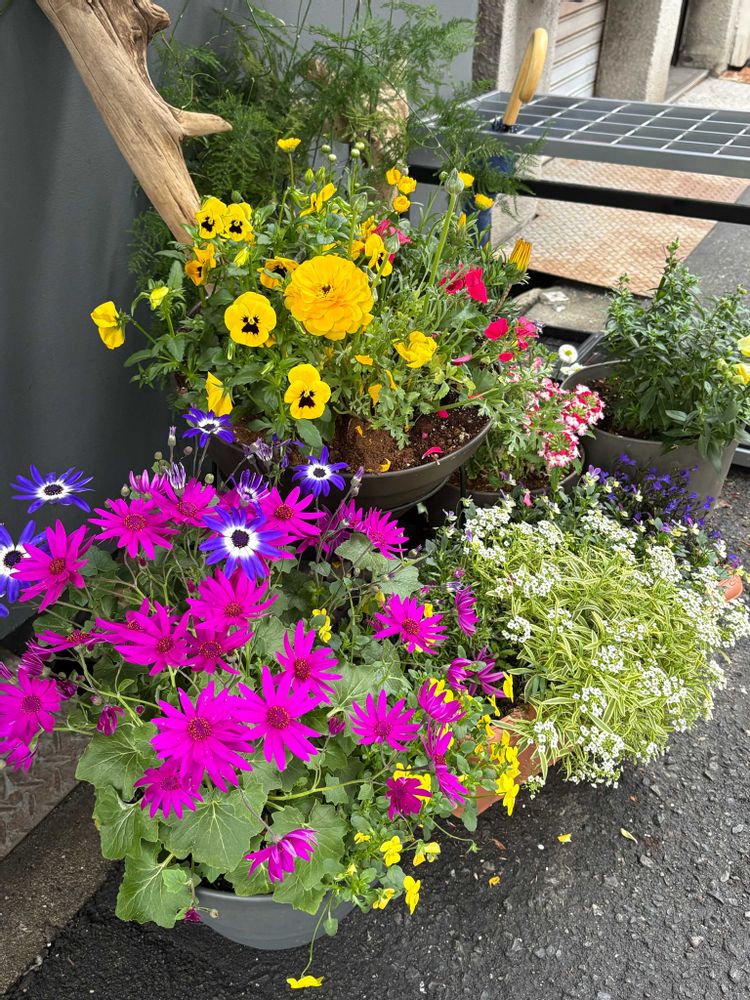 働いている飲食店の前に置いているお花たち😍