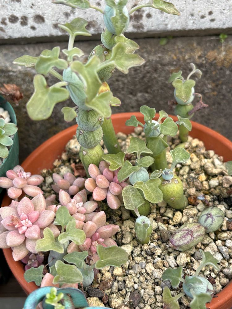 2025年4月にネットでたにたのさんの苗を購入した時におまけでついてきた名無しのエケベリアが面白く育っているので、成長記録を作りました。 この子の名前ご存知でしたら、ぜひ教えてください🙏