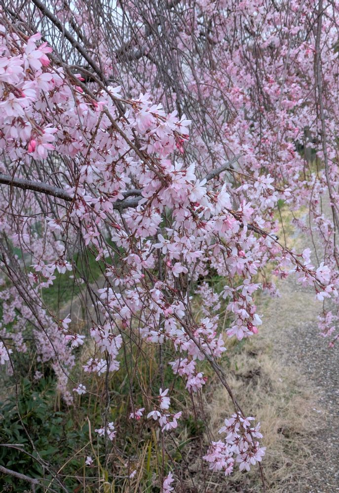 川沿いの遊歩道に咲く🌸ベニシダレ🌸
