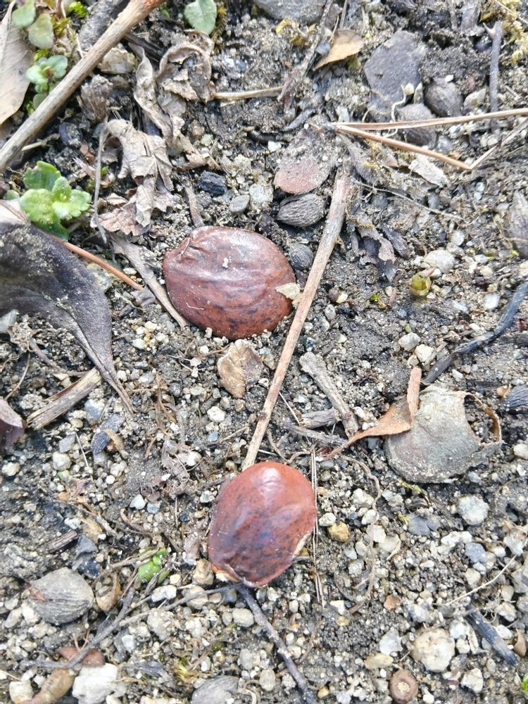 ⑤ 我が家の庭先まで弾け飛んで来た『藤の種』になりますが、無数に飛び散っていますネー😭😭