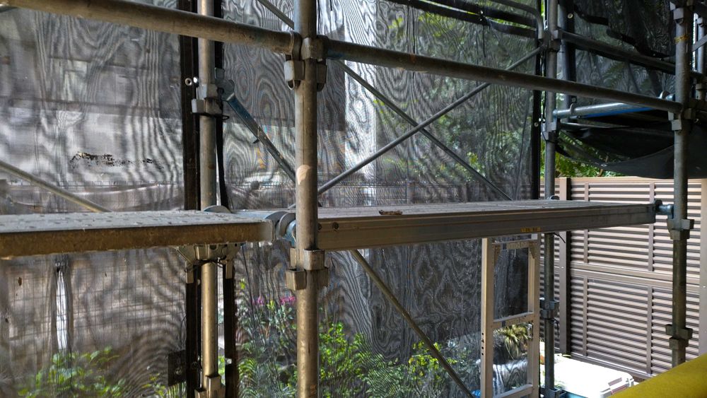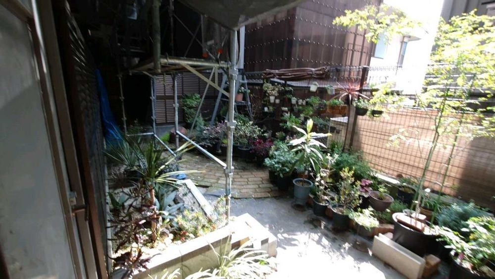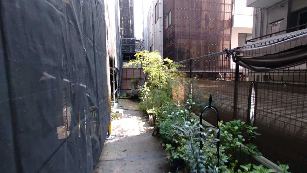 足場のネットが下まであった時は、ドライガーデンは真っ暗でした😫