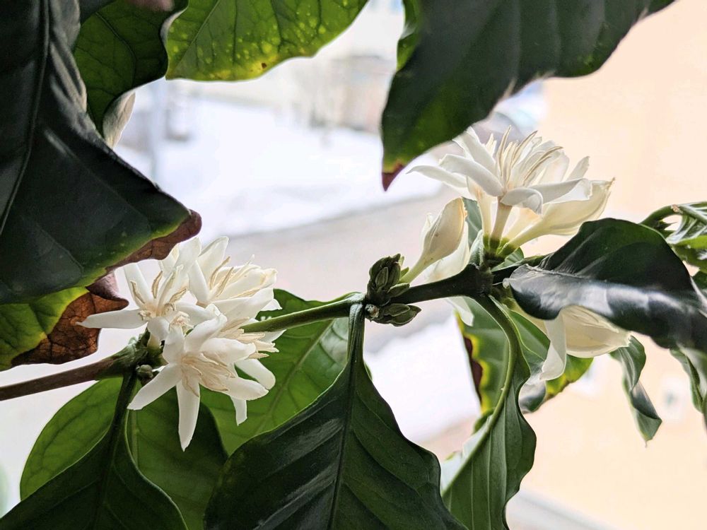 めずらしいコーヒーの純白の花はいい香りがするんですね🫢✨