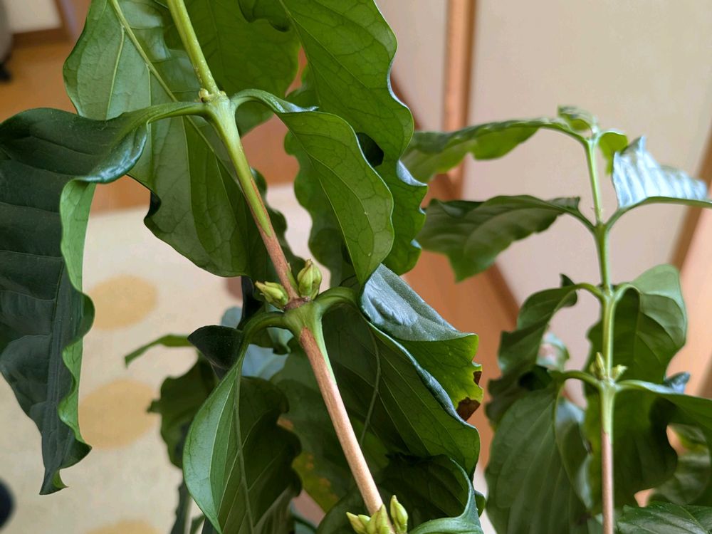 3本全部に蕾ができて、咲くと、ジャスミンのようなクチナシのようないい香り〜❣️