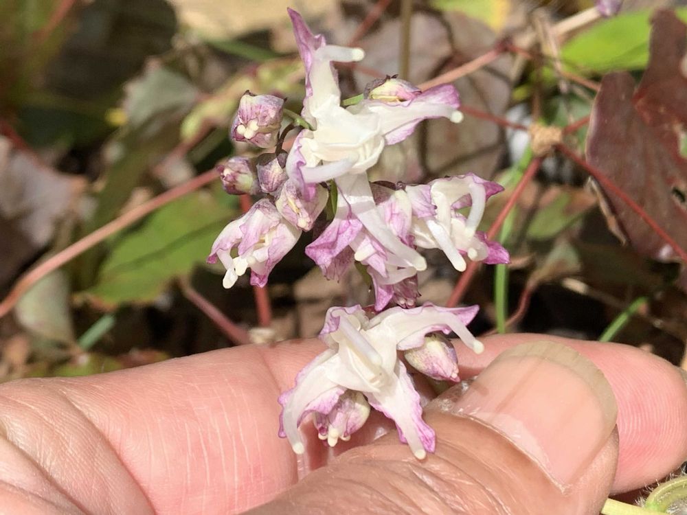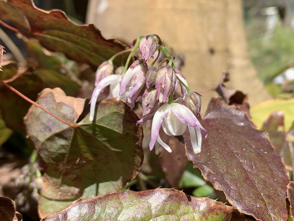 坪庭の京丹後産覆輪イカリソウが咲きました😊うつむいてるので持ち上げて😅裏山の桜も咲きました🌸風が強いので遠くから失礼💦桃の花はお預け💦アスパラガスの畑にナイロンロープで倒伏防止ネットを作りました😀