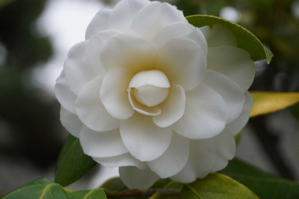 城内、二之丸庭園に咲くツバキ🤍