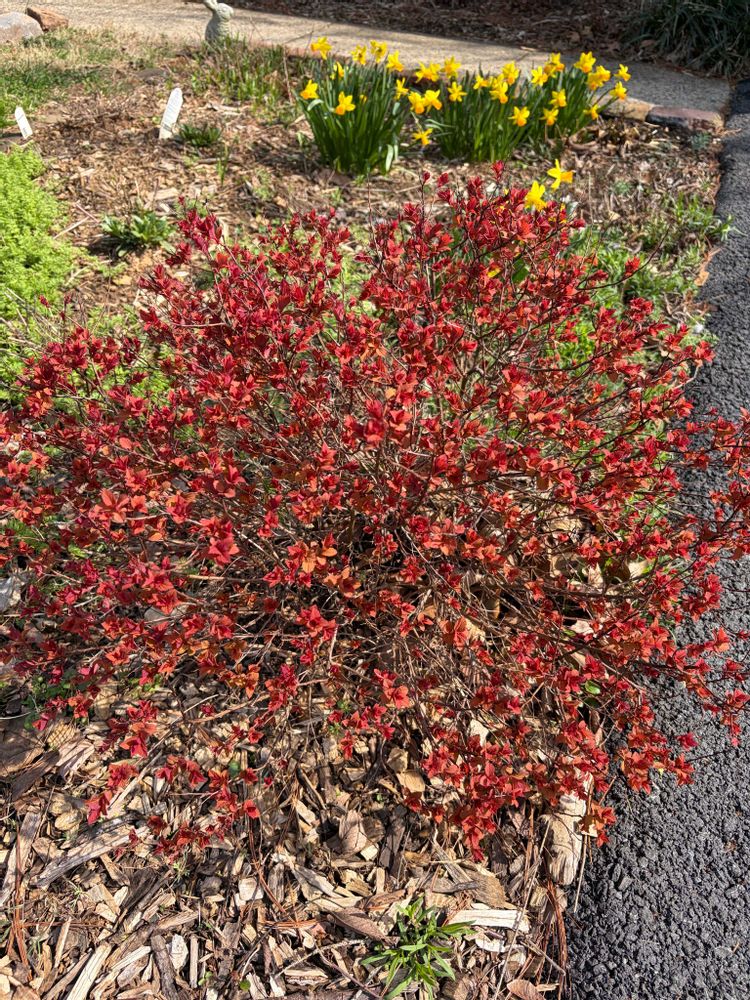② しもつけ 出始めは真っ赤な葉っぱで徐々に黄緑色に変わります。お花も咲かせてくれるし、言うことなし💓