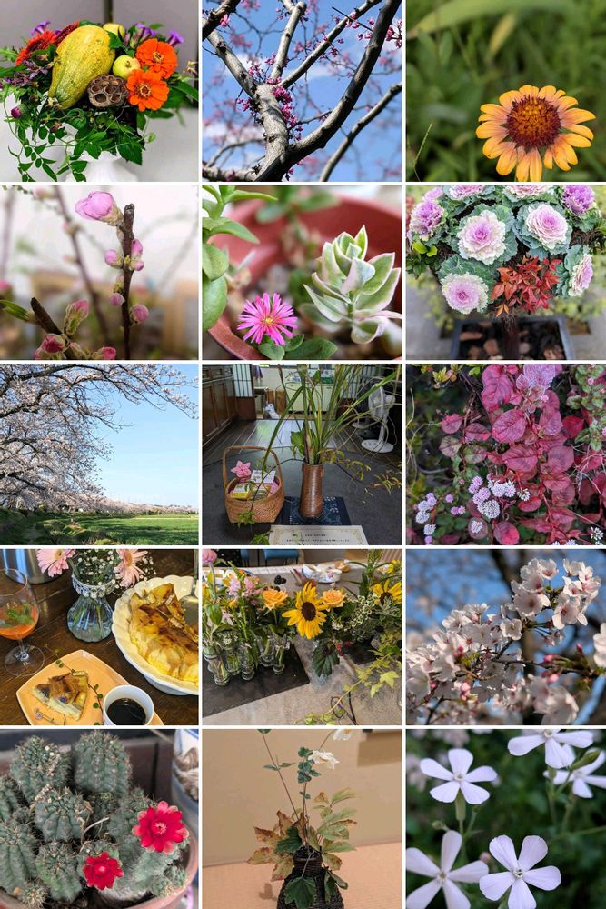 Googleフォトが「自然のブーケ💐豊田市」と題してコラージュしてくれました🍀😊✨2020年〜2026年🌸近所の桜並木🌿豊田市美術館、喜楽亭🍵( ^^) _旦~~お友達の🏠花遊庭🌻お料理教室🧑🍳Good memory☆(*˘︶˘*).。.:*♡