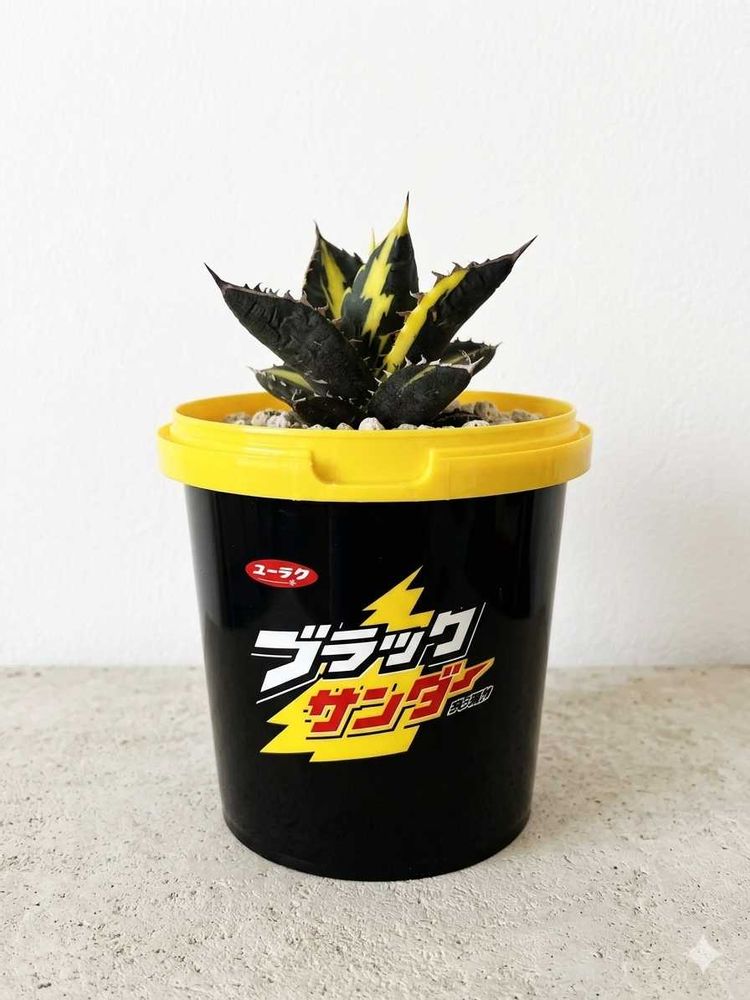 黒い葉っぱのアガベあったら黄中斑あれば良いのになぁと形にしてみただけなんです🙇黒い葉のアガベ無いですね、あってもよいのにな…