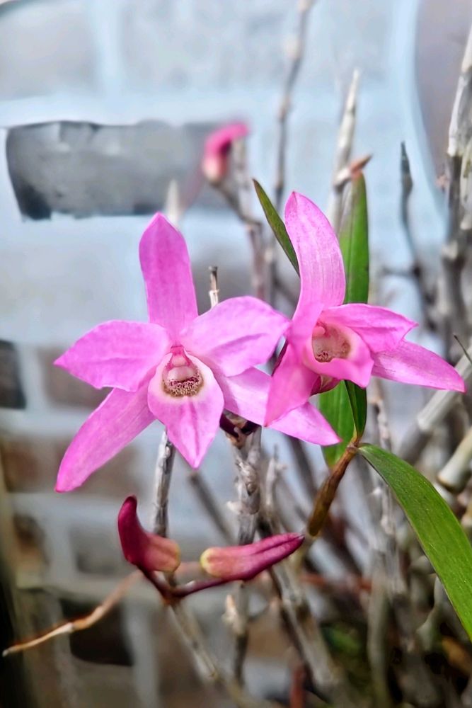 3枚め、1月に貰ったセッコクに花が咲いた~🙌🙌🙌。育て方検索🔍️しながら、手探りで育てたセッコク。水やりのタイミング今も🤔。嬉しい開花。フウランも咲きますように🍀。