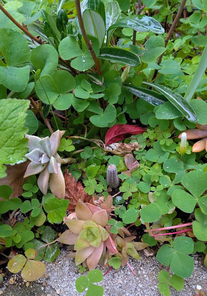 紐サボテン、地植えで冬越し出来ましたよ。ちょっと前に、被さるオキザリスを✂したのに、もう被さりそう(^_^;)⋯