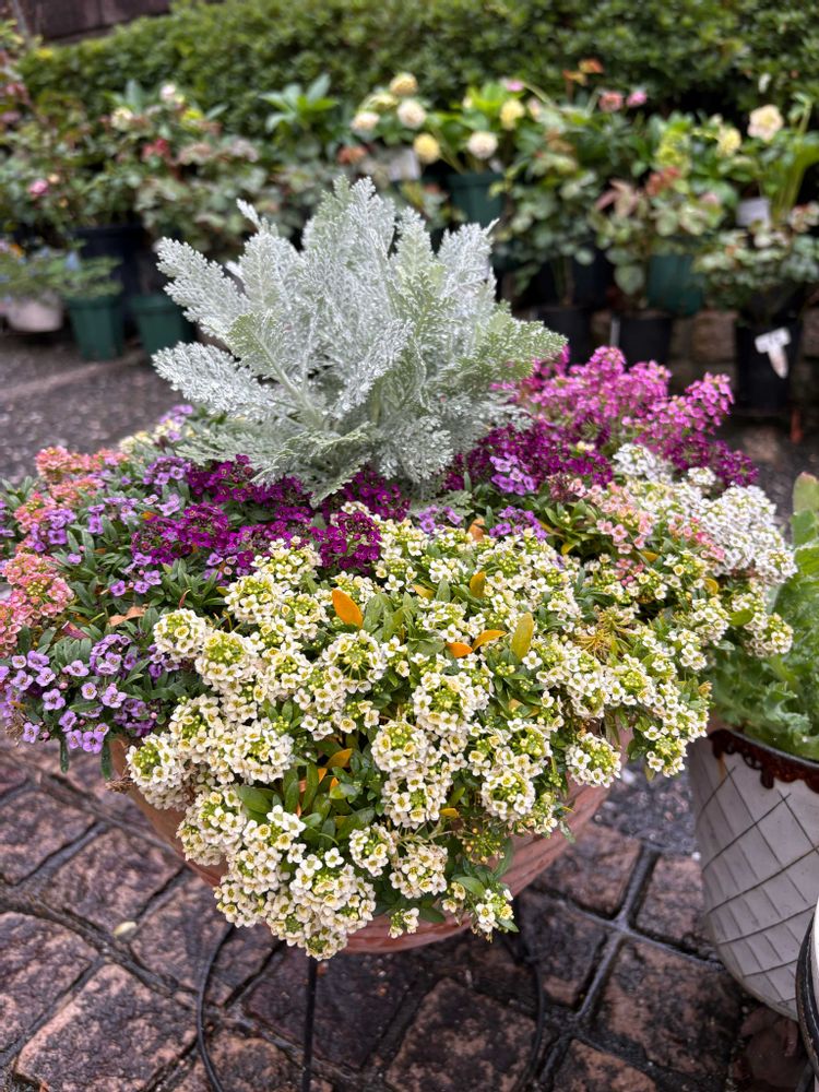 3枚目 アリッサムとシルバーレースの寄せ植えもモリモリになって植木鉢から溢れて来ました
