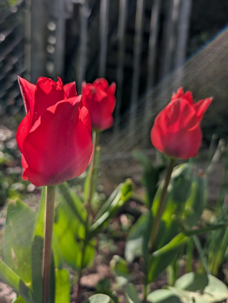 4枚目:先祖返りしたまま2代目からずーっと赤いチューリップ🌷になってもう4代目?毎回真っ赤なお花が付きます。子供返り?したりしてくれないかしら😂