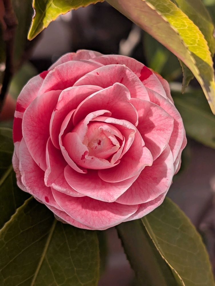 5枚目:最近AIで画像検索したらどうやらボノミアナ(Camellia japonica 'Bonomiana')っていう日本原産の藪椿を18世紀頃イタリアで品種改良された洋種椿ぽいです。移住して間もない頃白椿として売ってたものをお迎えしたものの3年目くらいからピンクのお花もつけ始めてん?なんか違う?って思ってました…咲き分け品種の千重咲きだそうで…侘び寂び感じたくて数年前にシンプルに咲く一重の山茶花もお迎えしたんですがなんか腑に落ちました🌸