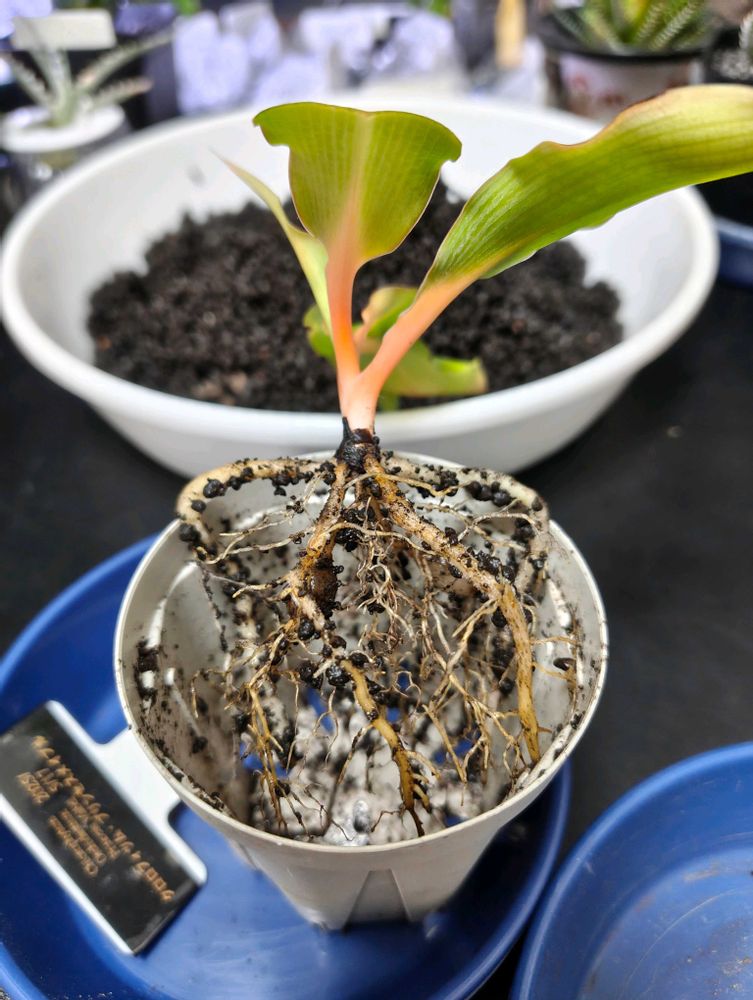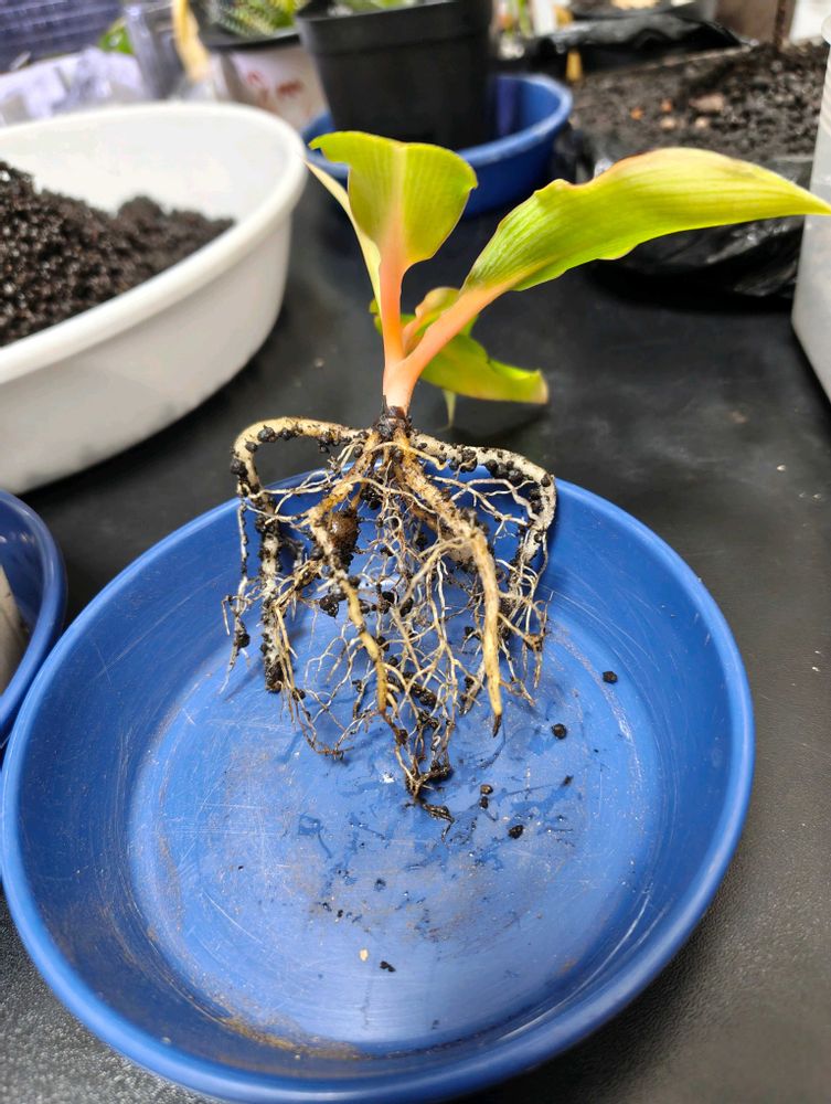 種から育てているオリヅルラン・プリンセスメイブルの根っこ。