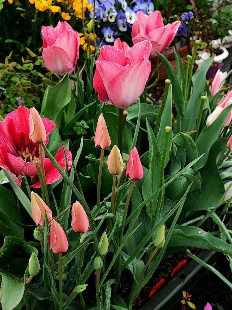 本日は雨でごじゃります。原種チューリップ アニカたんが色付いてきました。可愛い。ピンクサウンドも散るギリっギリまで素晴らしく美しいですね。花びらの縁がちょっと傷んではいますが、繊細な色合いと少しウェービーな感じが一重のチューリップなのにバラのようで本当にキレイ。毎朝うっとりさせてもらってます。