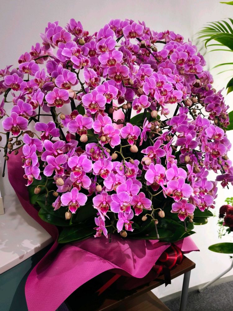すでにお祝い用のスタンド花は分解されて持ち帰りたい人はどうぞ❗となっていましたがさすがにこのミニ胡蝶蘭はそんなこともなく😅