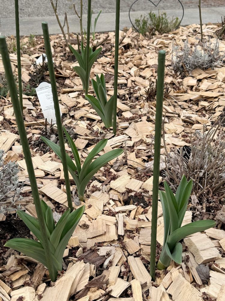 花壇の名前を忘れた球根もグッと背が伸びています