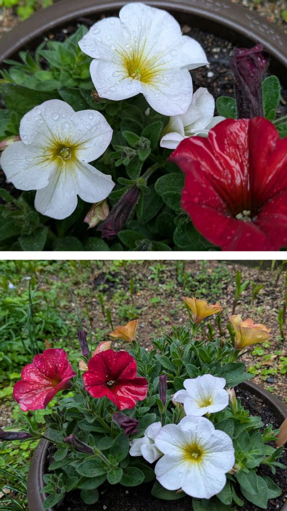 雨☔に濡れたペチュニアとカリブラコアを掛け合わせたお花